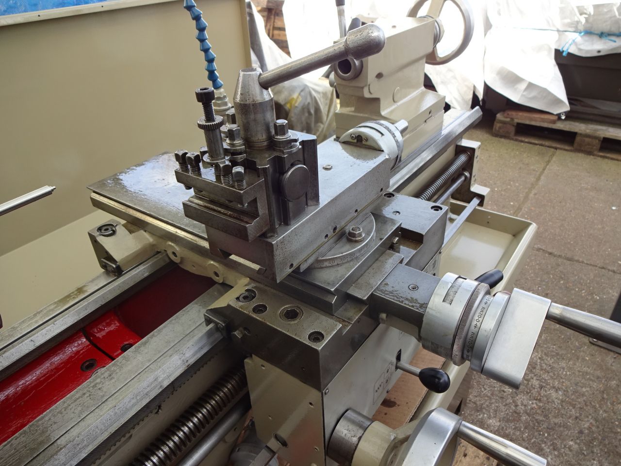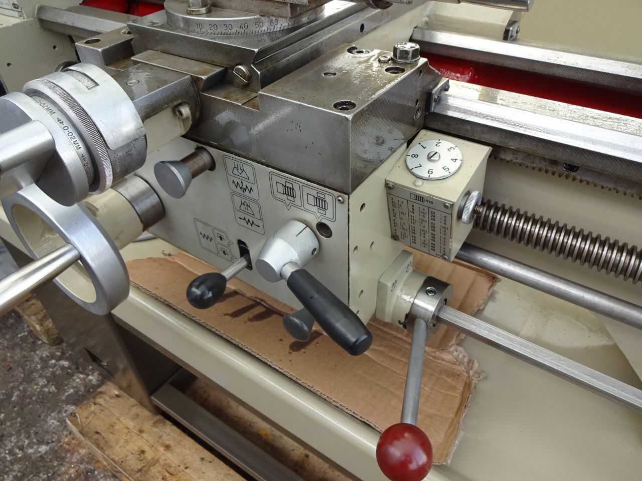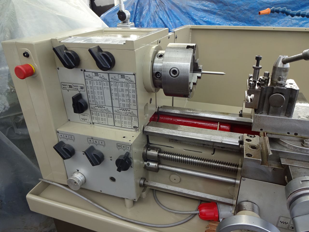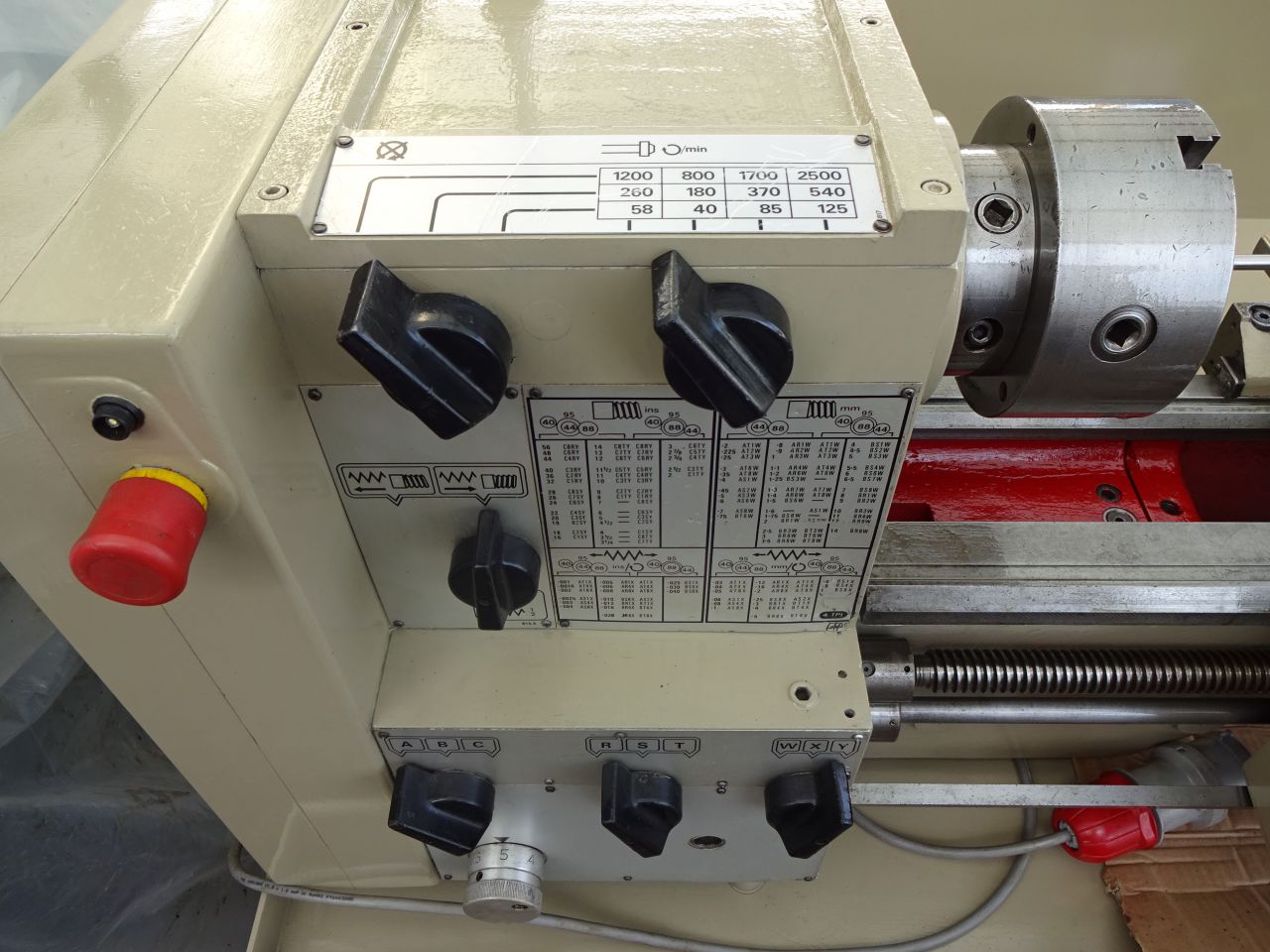 6" x 25" speeds (12) 20 - 2500rpm, gearbox, power feeds, 3 jaw chuck + internal & external jaws, Dual dials